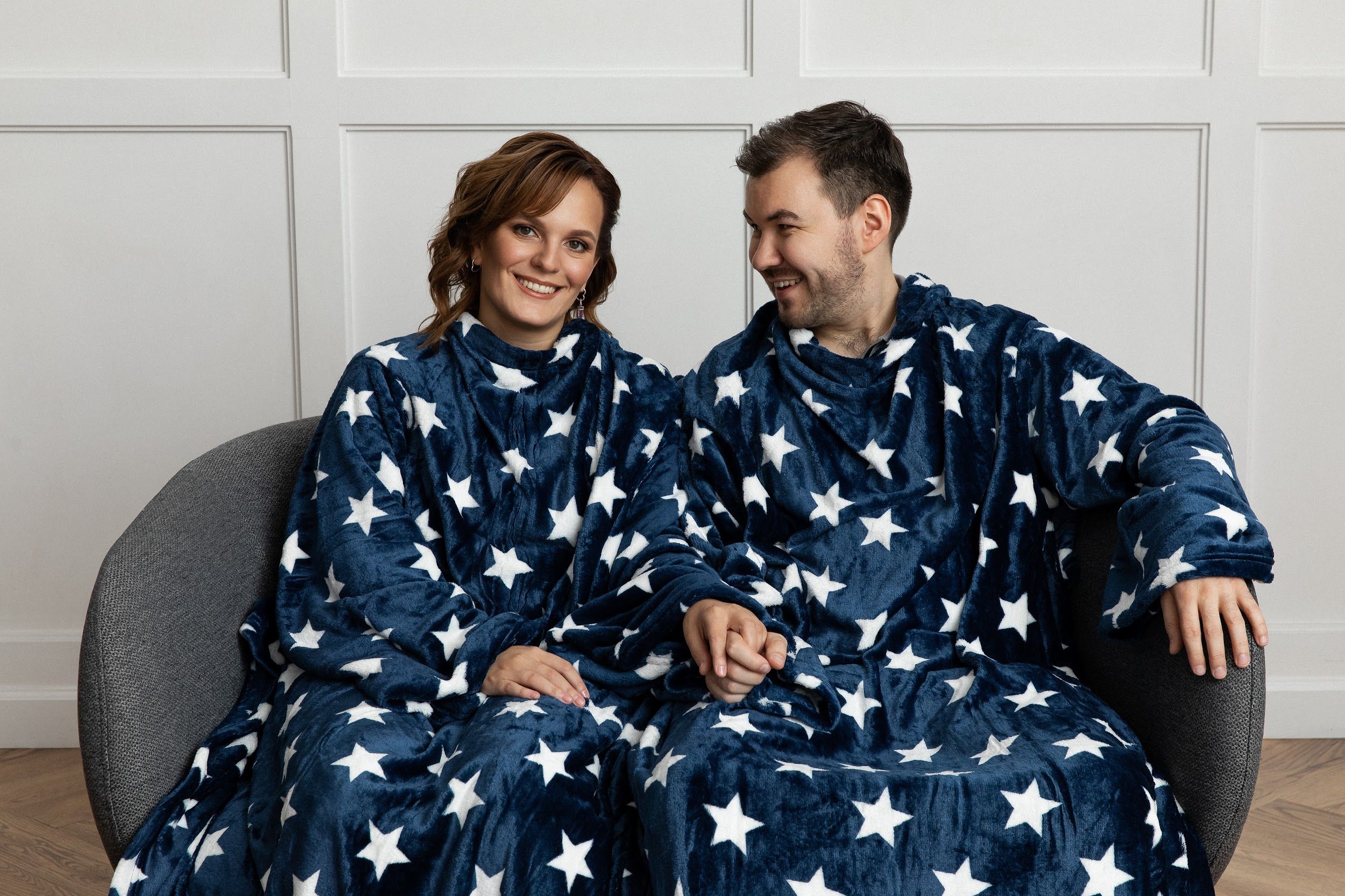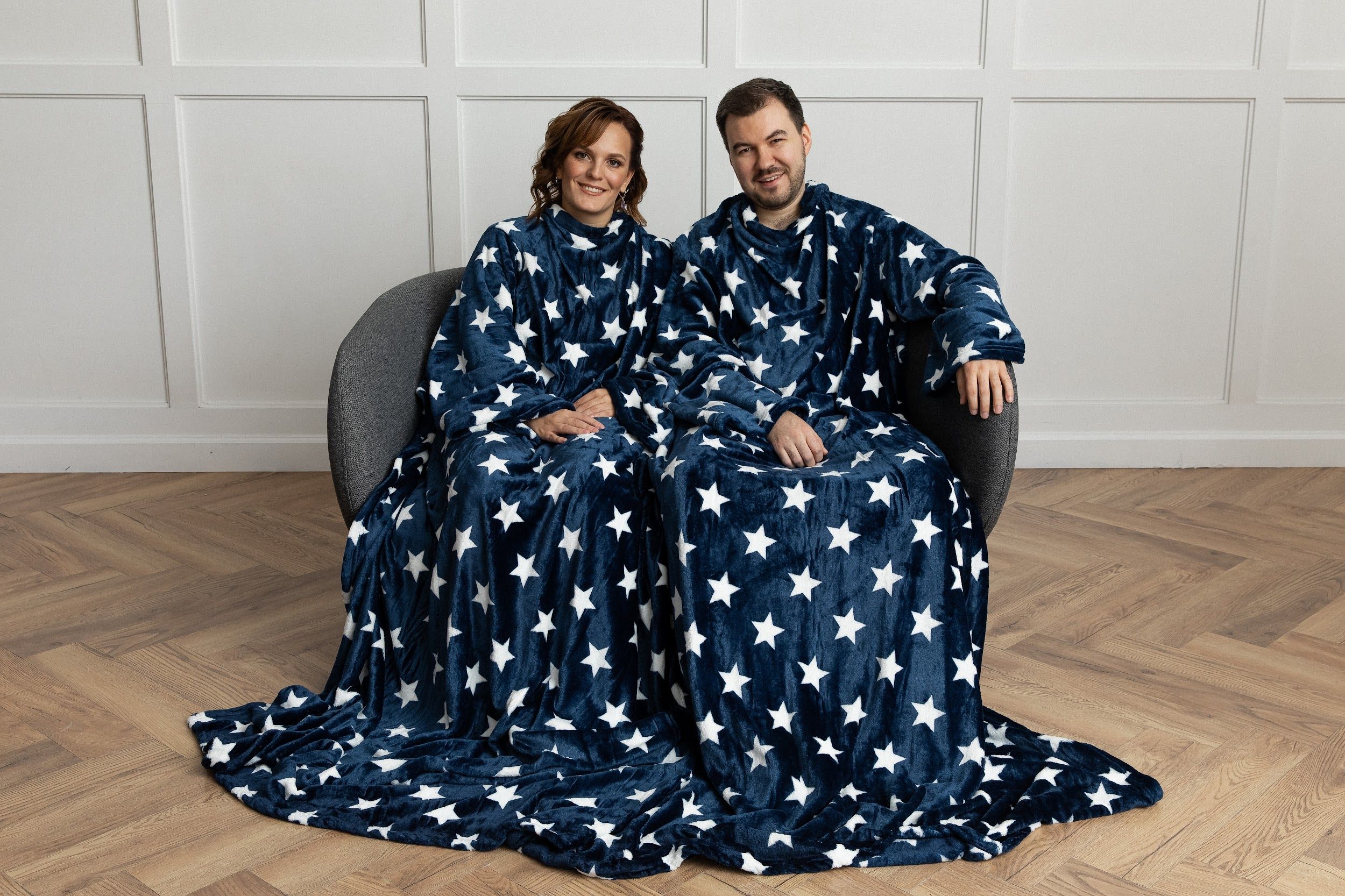 Парный плед с рукавами "Звезды" из велсофта (микрофибры)