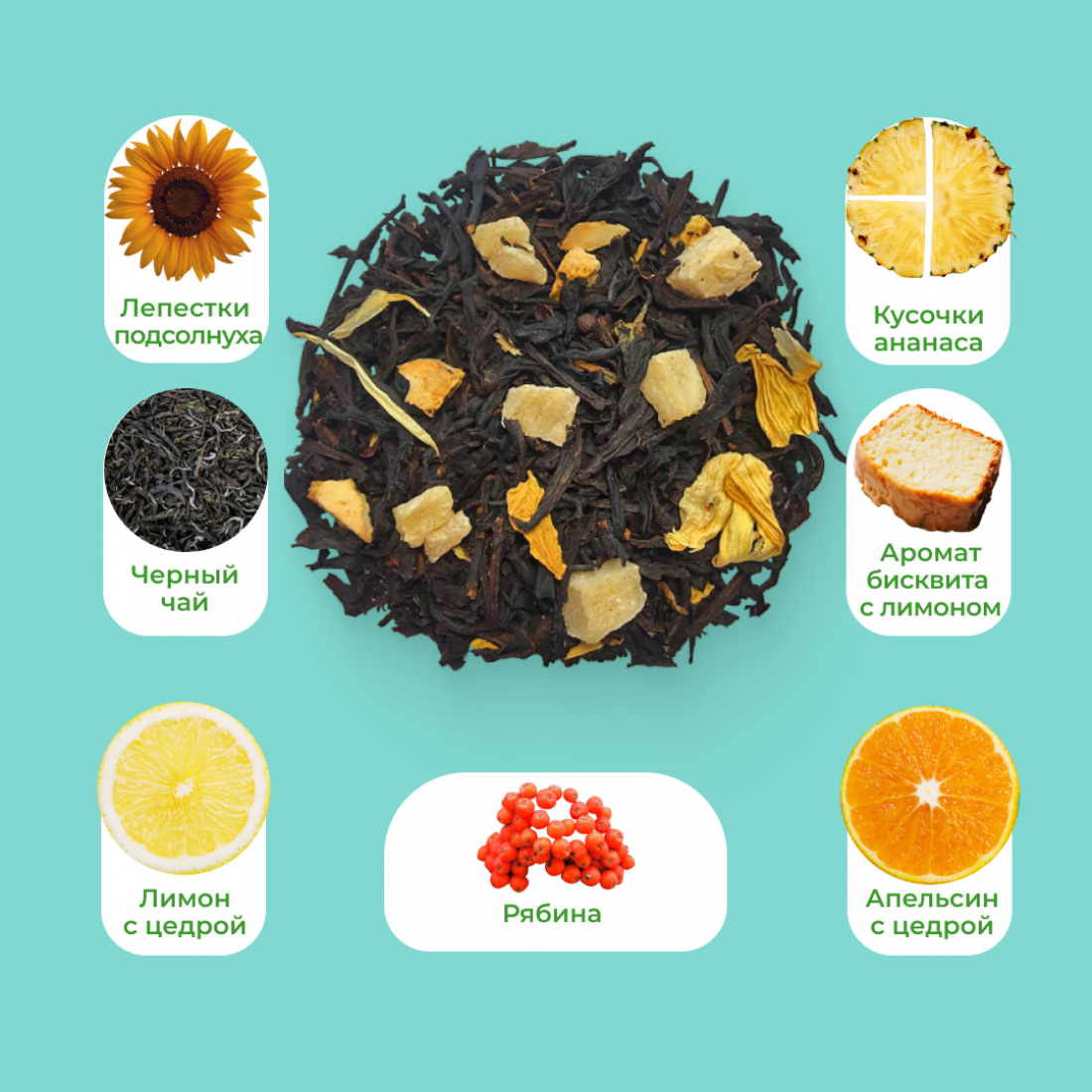 Насыщенный черный чай с ароматной цедрой лимона с волшебным бисквитным послевкусием.
