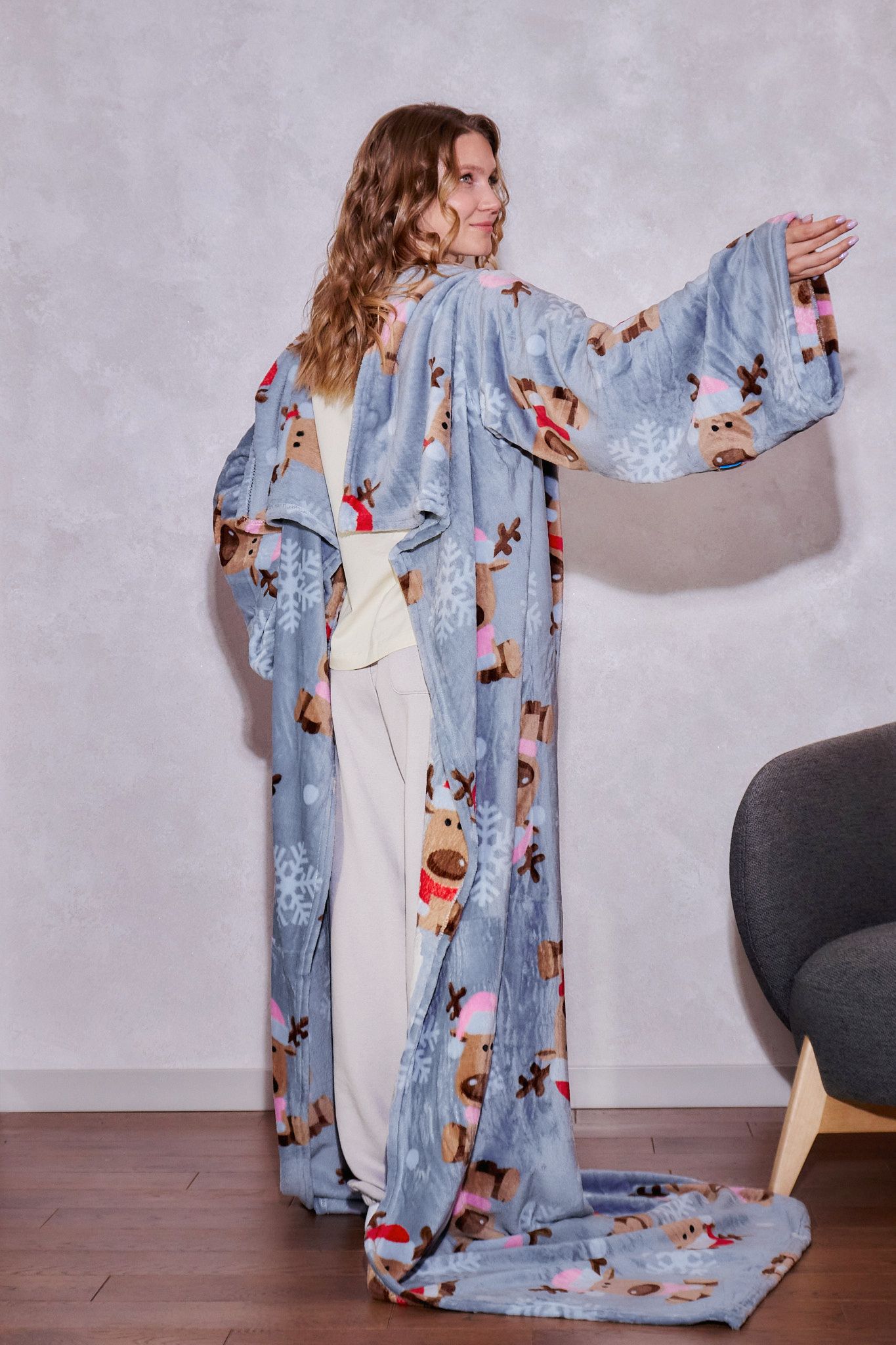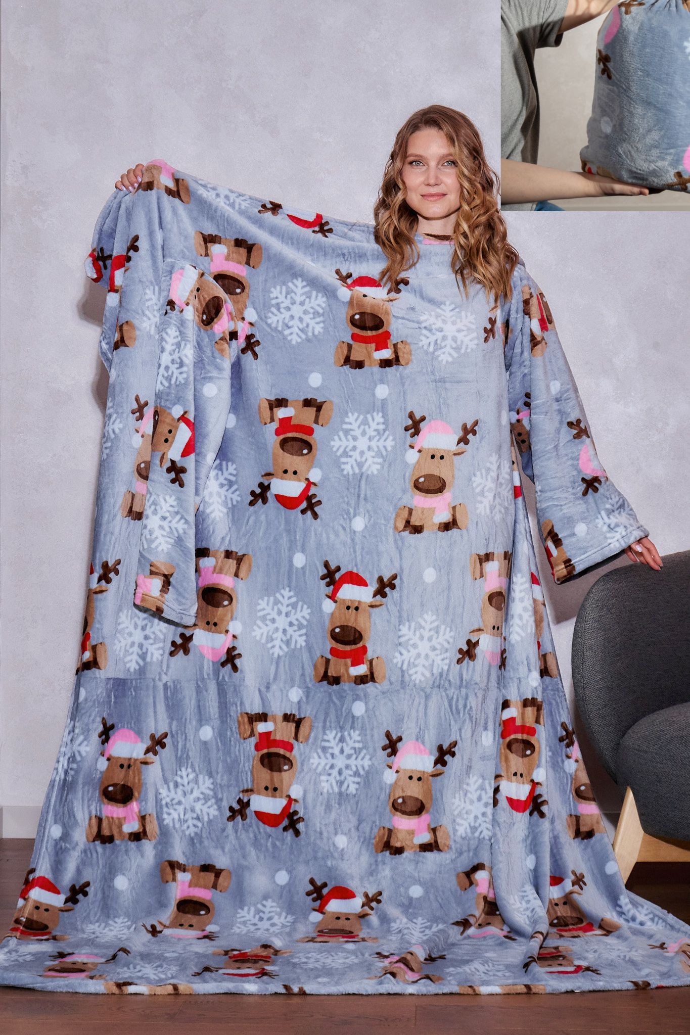 Плед с рукавами "Лапландия" из микрофибры (велсофта)