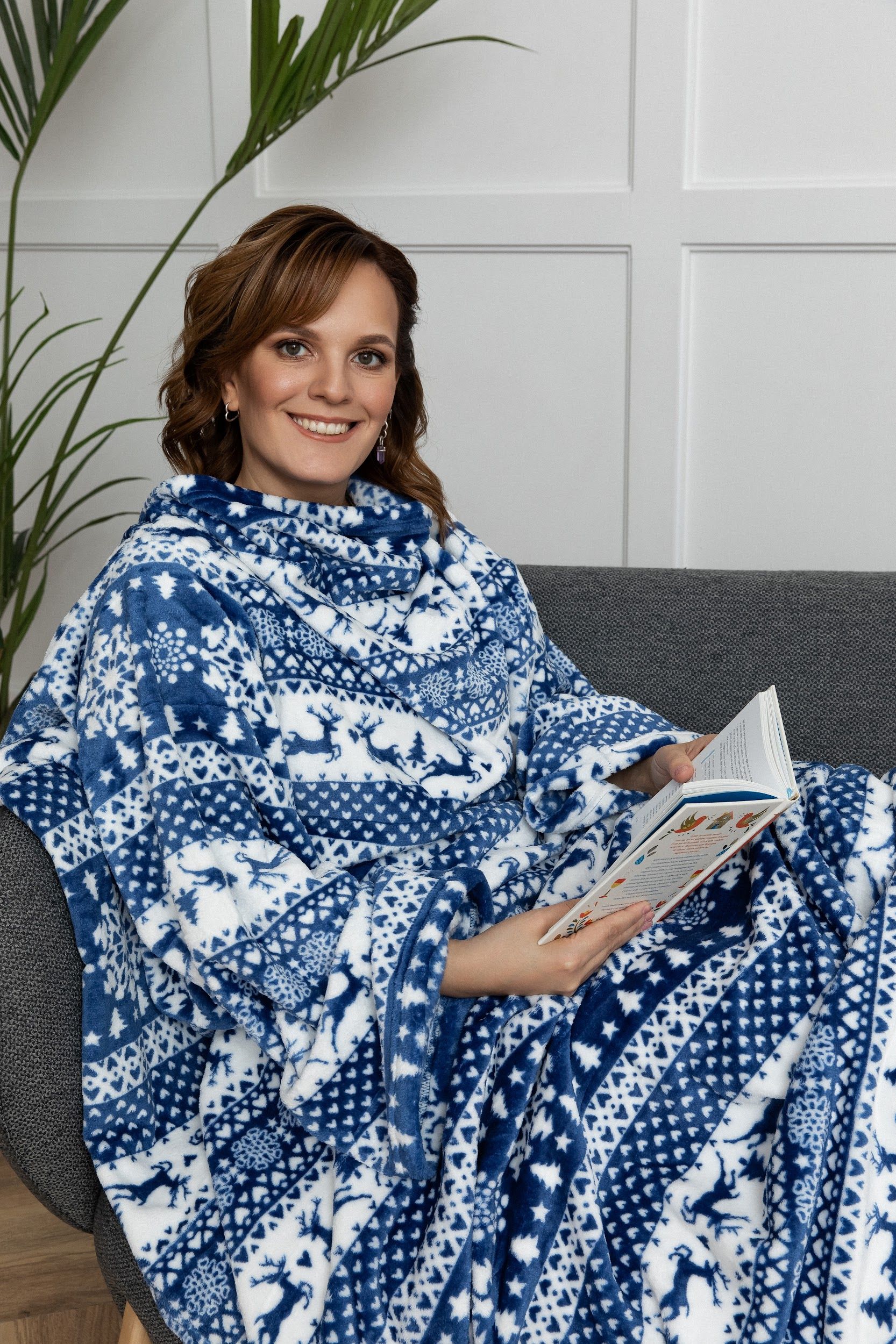 Удобный и мягкий плед с рукавами подарит Вам тепло и уют холодными вечерами. Вы просто протягиваете руки в рукава и полностью укутываетесь в плед. Он не будет мешать Вам, поэтому вы сможете заниматься любимыми делами и не мерзнуть.