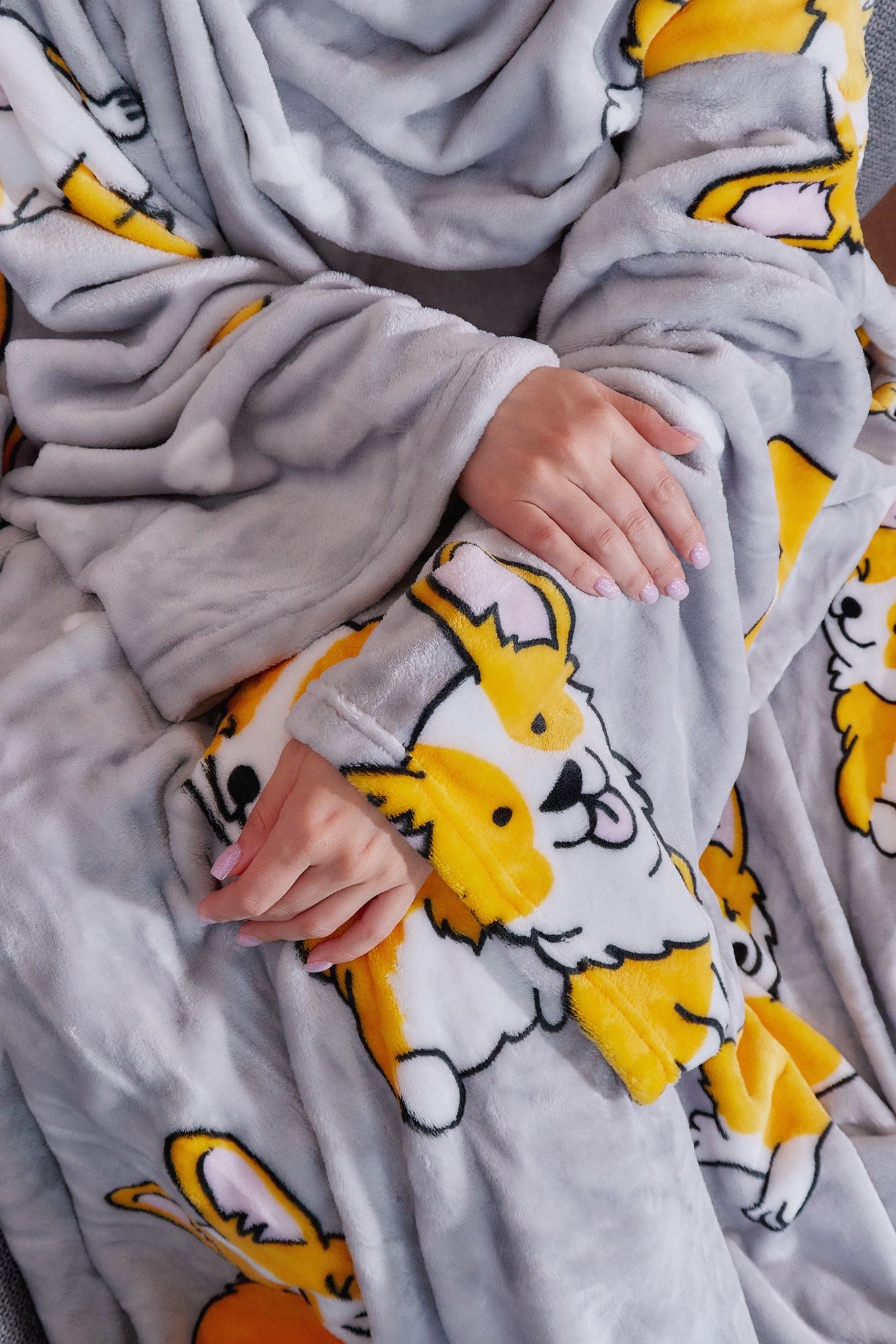 Плед с рукавами "Хочу корги" из микрофибры (велсофта)
