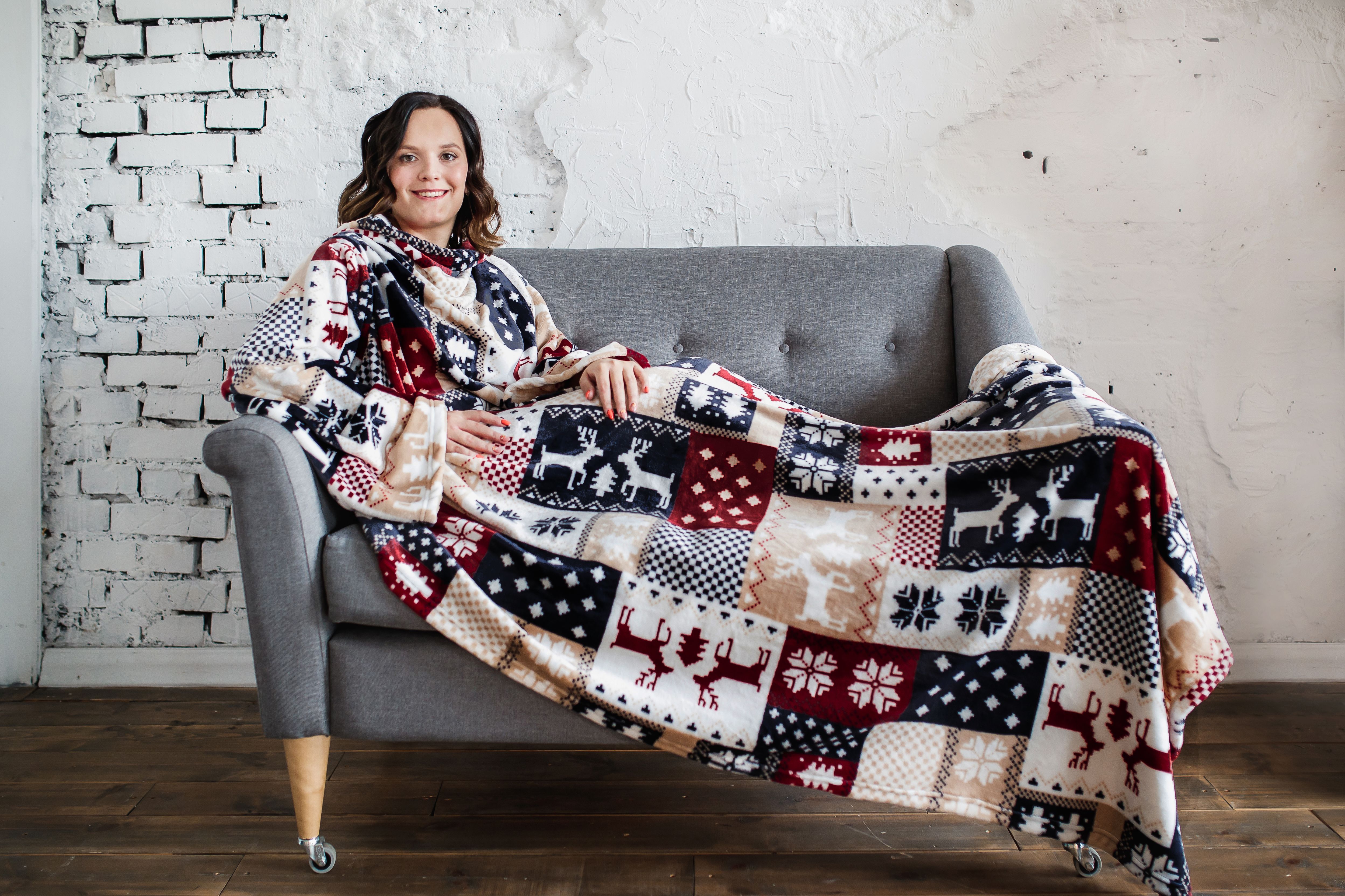 Удобный и мягкий плед с рукавами подарит Вам тепло и уют холодными вечерами. Вы просто протягиваете руки в рукава и полностью укутываетесь в плед. Он не будет мешать Вам, поэтому вы сможете заниматься любимыми делами и не мерзнуть.