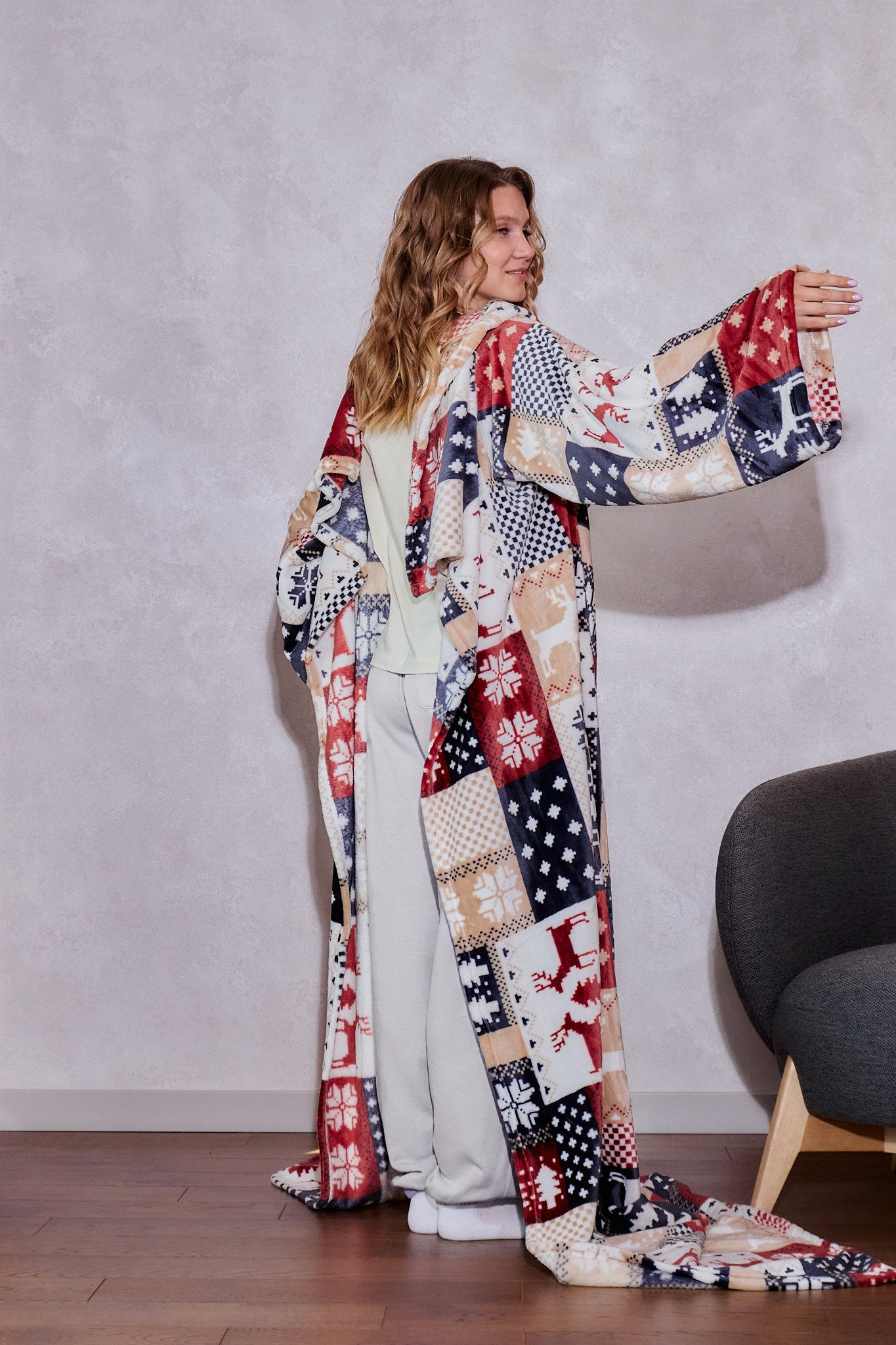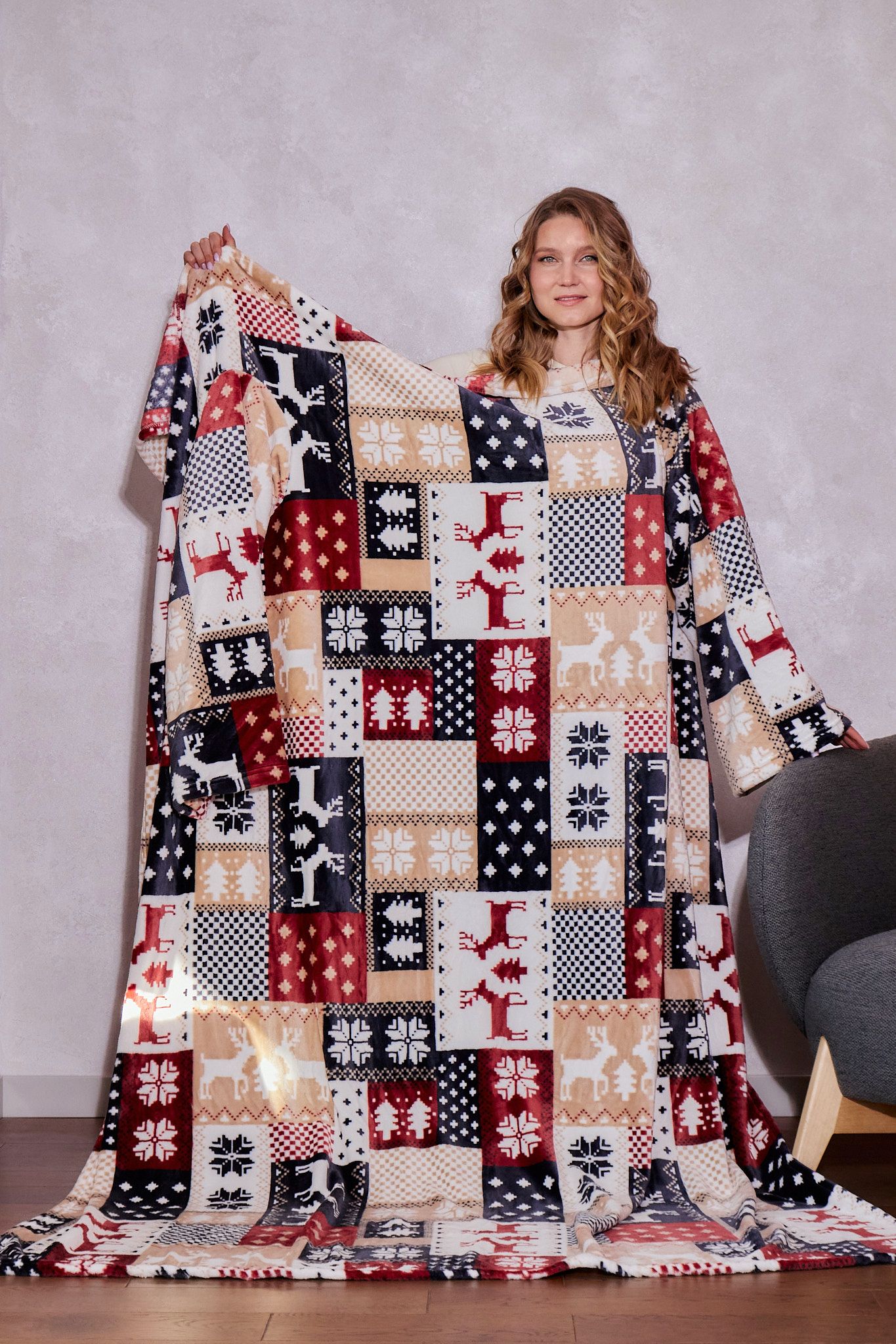Плед с рукавами "Зимние узоры" из микрофибры (велсофта)