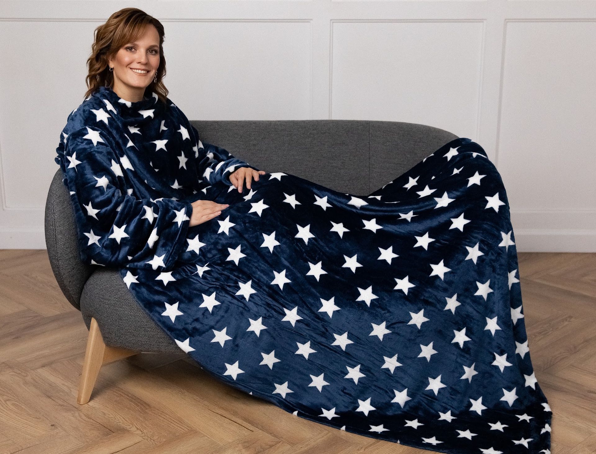 Плед с рукавами "Звезды" из микрофибры (велсофта)